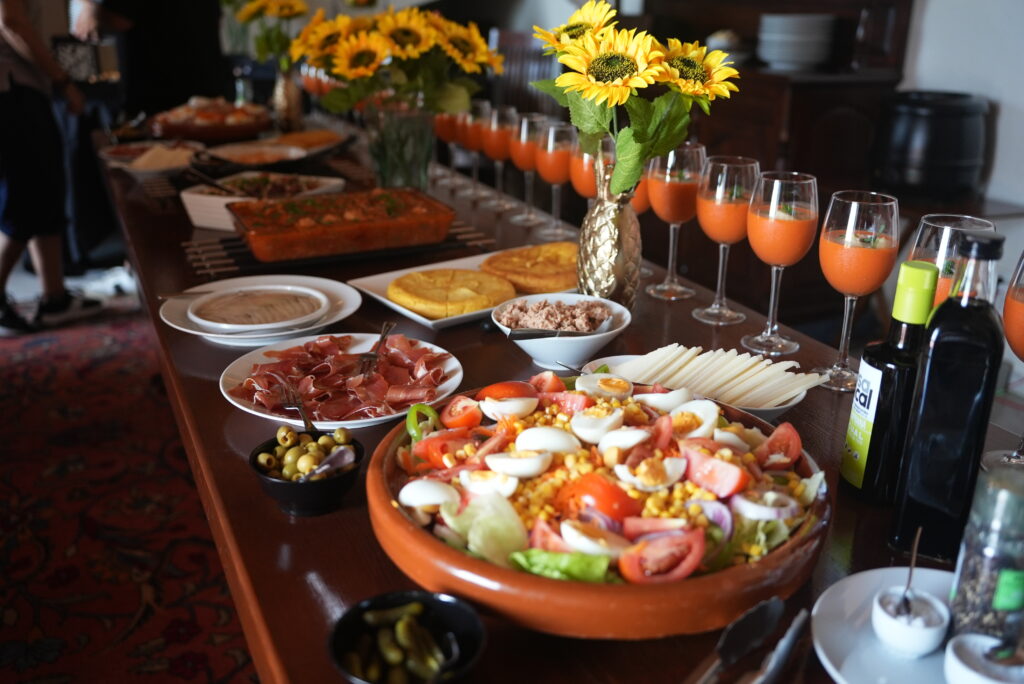 The morning began bright and early at 8:30 AM for breakfast. Everyone gathered at the villa, arriving between 8:30 AM and 9:30 AM for the buffet spread. We feasted on fresh fruit salads, yogurt, various hams and cheeses, dried fruits and nuts, cereal, overnight oats, and bread for toasting. Each day, a delicious egg dish was served, either with smoked salmon or bacon. There was more than enough to keep us satisfied until 11 AM, when tea and coffee accompanied cakes, biscuits, and fruit—the perfect mid-morning pick-me-up!